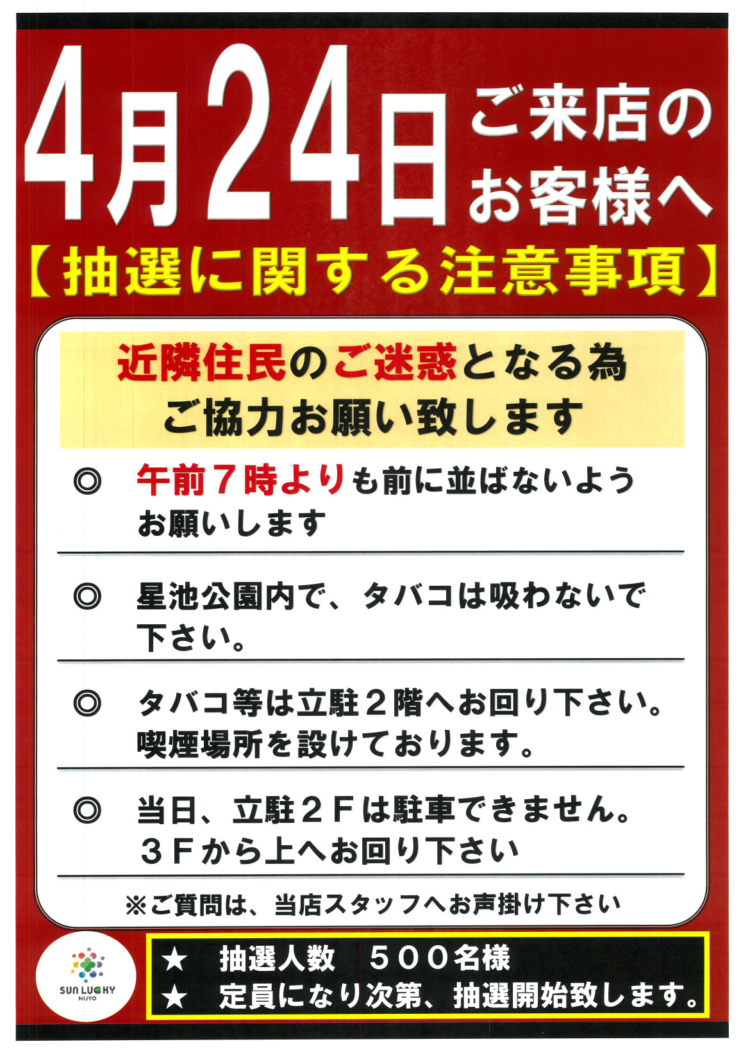 ※ご協力をお願い致します。 pic.twitter.com/Y0vqexNZuB— SunLucky二条店 (@SunLuckyNijyo) April 23, 2025