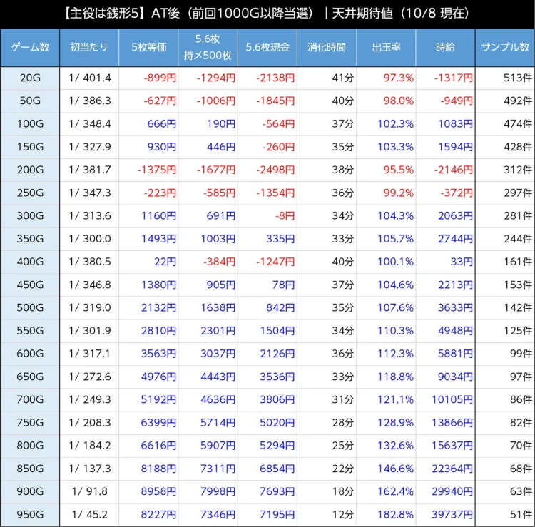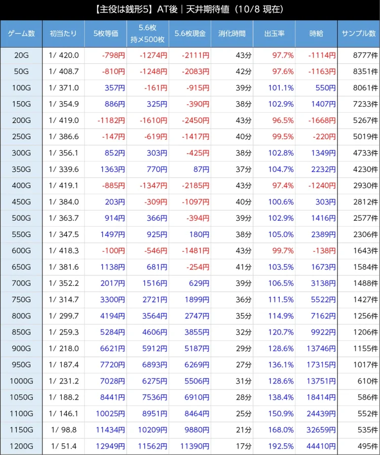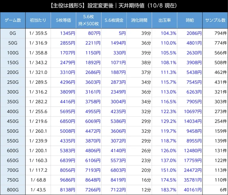 主役は銭形5の2日目データを追加して、数値をすべて再計算しました。