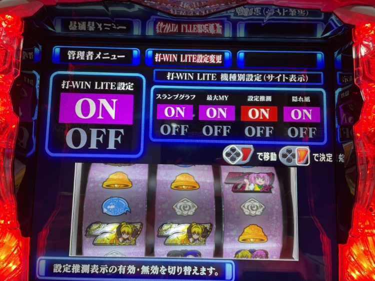 スマスロ『L ToLOVEる』には打-WIN LITEの設定示唆(隠れ凪など)を表示しないように設定できる管理者メニューが搭載されているようです。