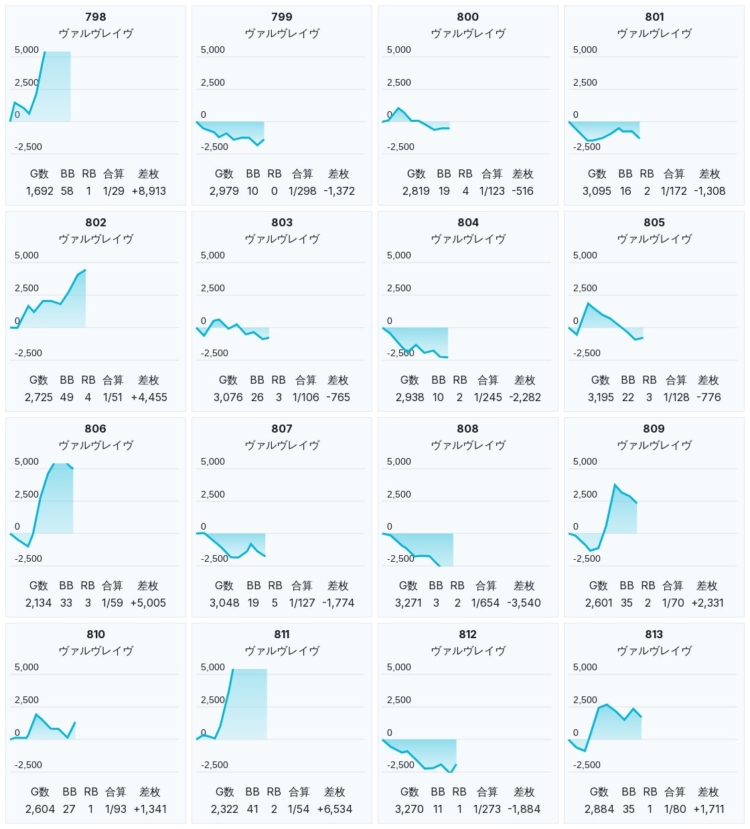 3台とも投資2000枚以内でおさまってるので上はそこそこ安定するのかと思いましたが、4000~5000枚くらい飲まれてる区間があるのでそんな事はなかった(笑)