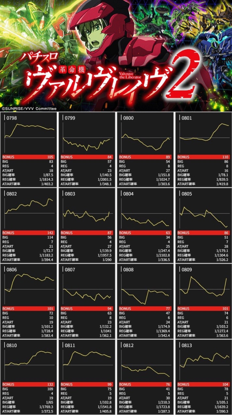 『L革命機ヴァルヴレイヴ2』の全6濃厚データが公開!導入初日の15時にコンプリートする猛者も出現www