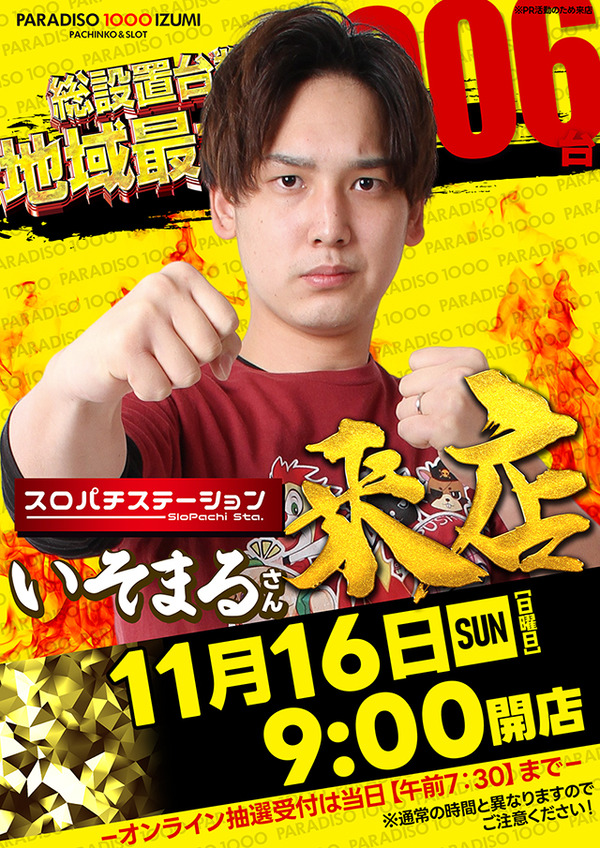【いつもの】パラディソ1000泉店、いそまる来店で抽選参加人数4000人!前日から車内待機する人もwww