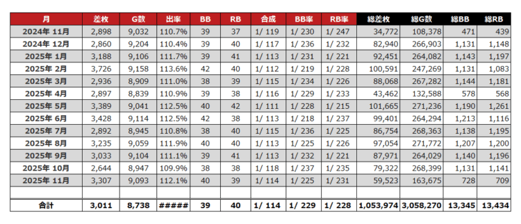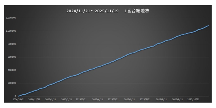 123+Nフェニックスプラザ摩耶店(兵庫)のグランドオープンから1年間毎日設定6を据え置いたマイジャグラーVのデータが話題となっているようです。