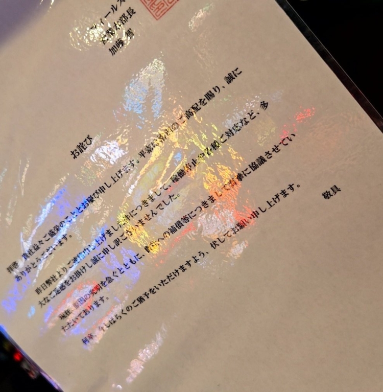 この度弊社よりご迷惑をお掛けしました件につきまして、稼働停止や各種ご対応など、多大なご迷惑をお掛けし誠に申し訳ございませんでした。