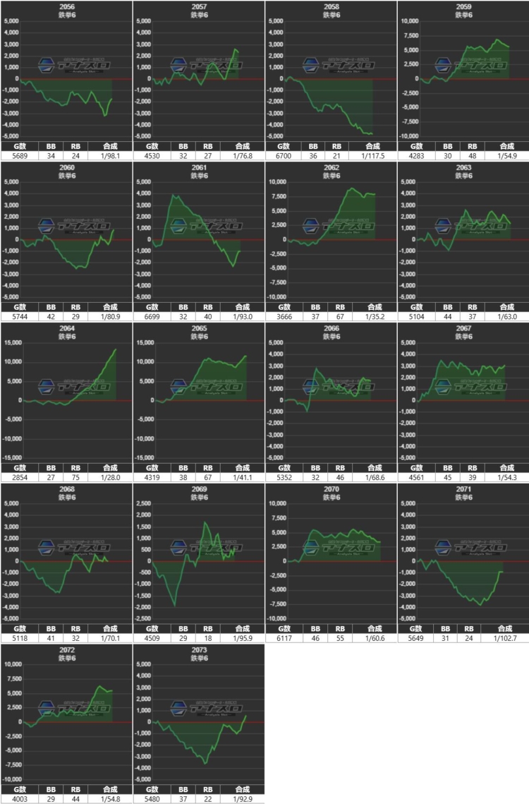 マルハンメガシティ2000蒲田7の『L鉄拳6』の4日連続全6濃厚データがこちらwww