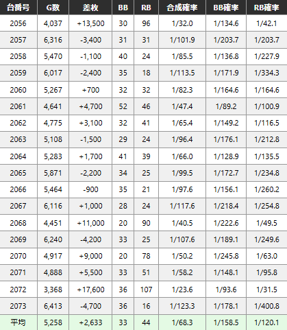 ✅平均差枚 +3,467枚