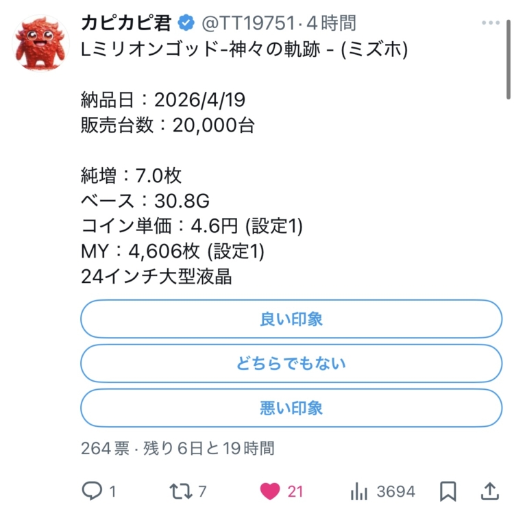 2026年4月20日導入予定 ユニバーサル(ミズホ)の新台スマスロ『Lミリオンゴッド』のスペック情報に関する噂が話題となっているようです。