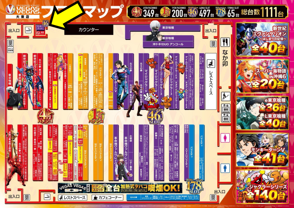 という事で、ベガスベガス大東で今後抽選1番を引かれた方はこちらの禁煙モンキーに向かう事を強くオススメします。