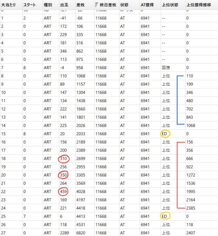 また、差枚マイナスで1000枚エンディングが発生してもその後真景之STor裏景之STならきちんと差枚2400枚付近までED発生せず取り切れてるので少なくとも差枚マイナスの1000枚エンディングでは有利切れないっぽい。