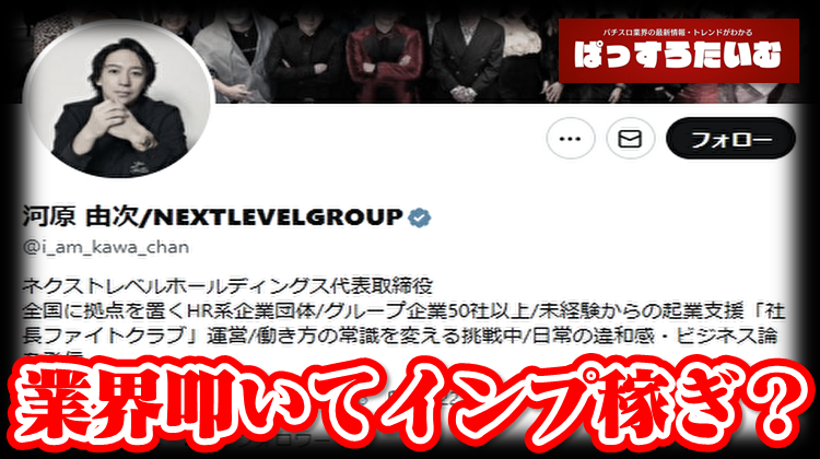 某HR系企業団体の取締役のアカウントに定期的なパチンコ業界叩きでインプ稼ぎしてる説が浮上し話題となっているようです。