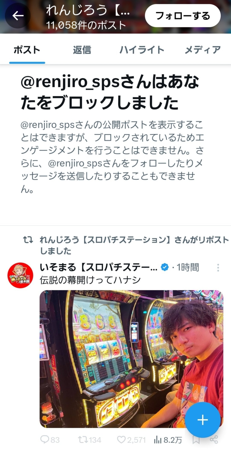 スロパチステーションれんじろうさんが女性演者をブロックしている件が話題に「今後もこのスタンスを変えることはない」