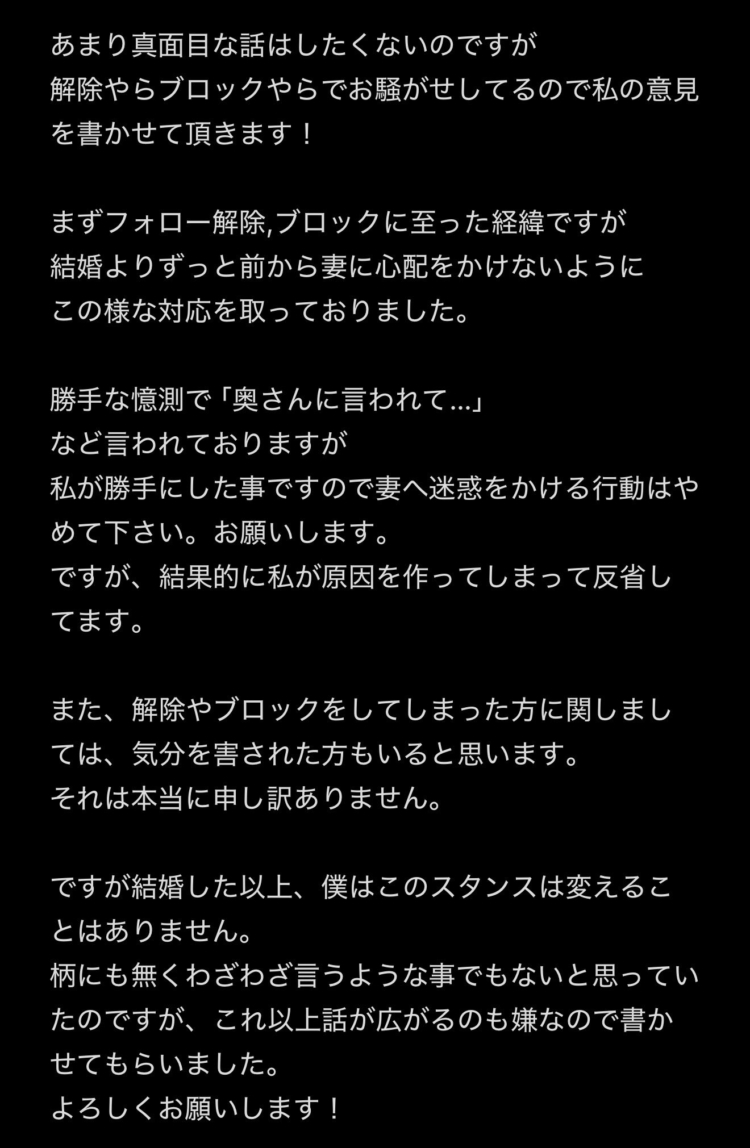 奥様に心配かけないように自ら女性演者さん達をブロックしていたそうです✨